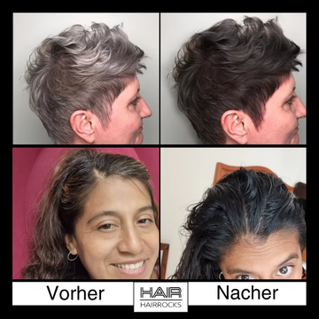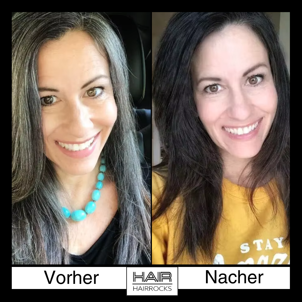 Unsere Vorher-Nachher-Galerie zeigt beeindruckende Farbveränderungen, die unser Sofort-Färbe-Shampoo ermöglicht.