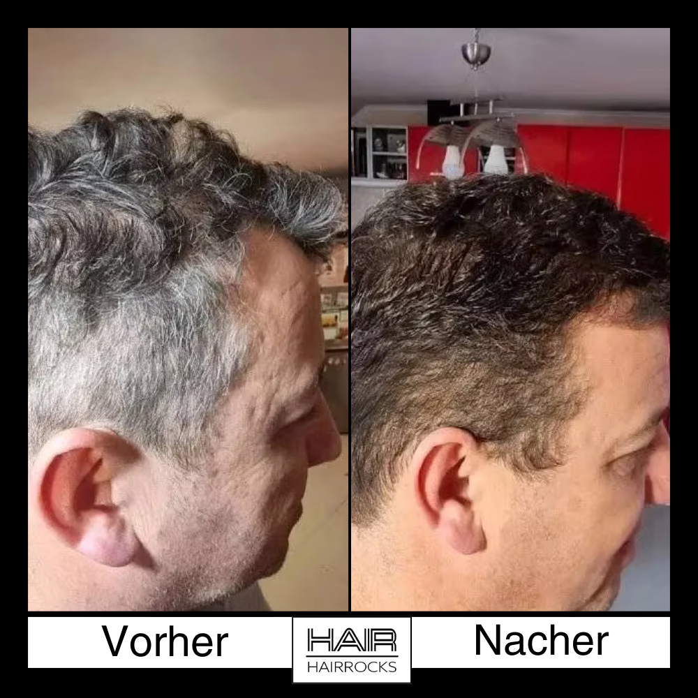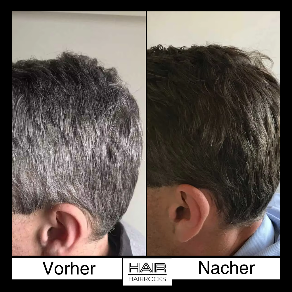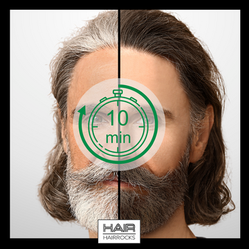 Hairrocks bietet eine perfekte Abdeckung der grauen Haare, die je nach Häufigkeit des Haarewaschens zwischen 4 und 6 Wochen anhält. Außerdem kommt es in einer handlichen Shampooflasche, sodass Sie Ihre Ansätze bei Bedarf leicht nachfärben können und kein Abfall entsteht.