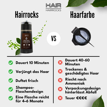 Herkömmliche Haarfärbemittel strapazieren und trocknen das Haar aus – nicht mit Hairrocks!